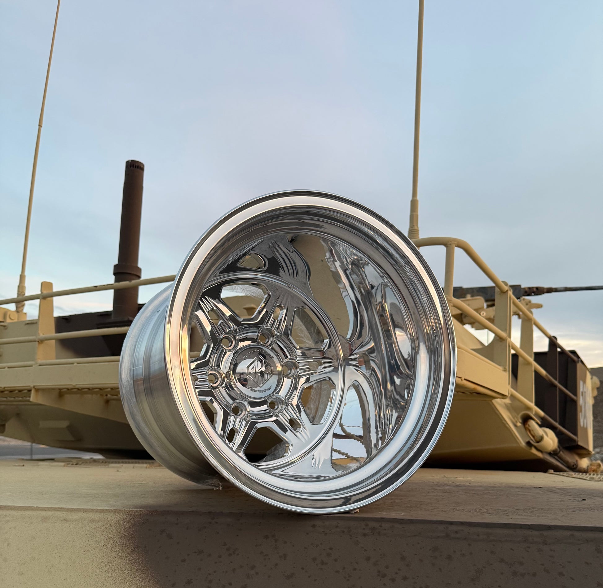 Construction of the wheels are composed by Merging T6061 Forged Centers and Alcoa Aluminum Spun Barrels followed by a precise Weld Seam at the rear to integrate the build prior to Polish